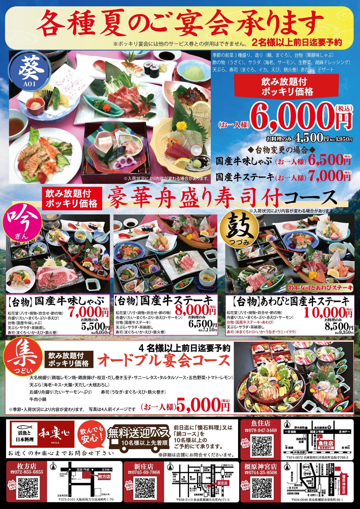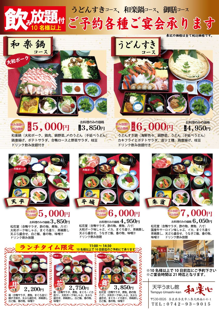 和楽心の新店舗が誕生しました。 観光客で賑わう奈良、その中に1300年前、奈良時代の京であった平城宮跡歴史公園があります。 世界中から多くの人々が訪れる観光名所で和楽心の心(お客様に美味しい、楽しい、幸せな時間をご提供します)を広めていきたいと思います。 皆様、新店舗に応援お願いします。