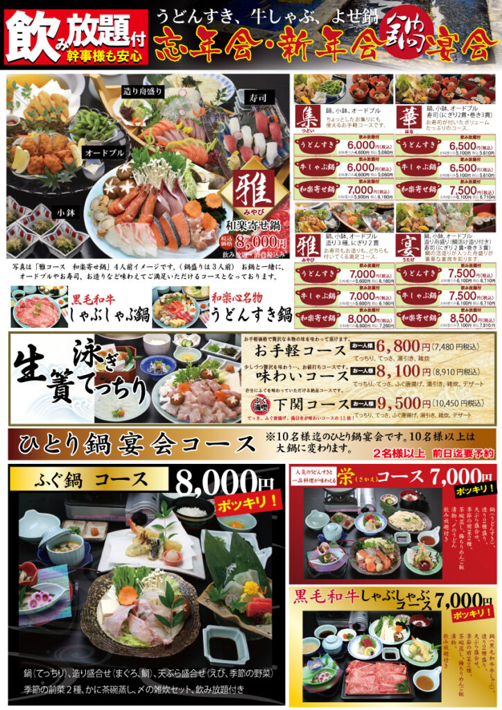 鍋料理は10月20日よりスタート!※但し、てっちりは11月1日より